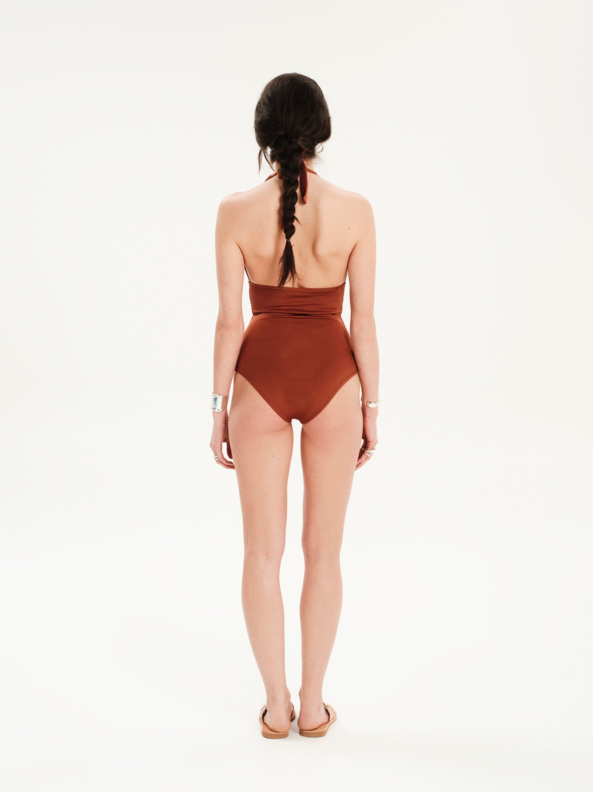 Embrace a timeless look with this halter neck swimsuit. Its flattering V-neck and deep back design are paired with a halter tie neck, offering both comfort and style. Whether you’re lounging by the pool or enjoying a day at the beach, this swimsuit promises to keep you looking chic and feeling confident.
