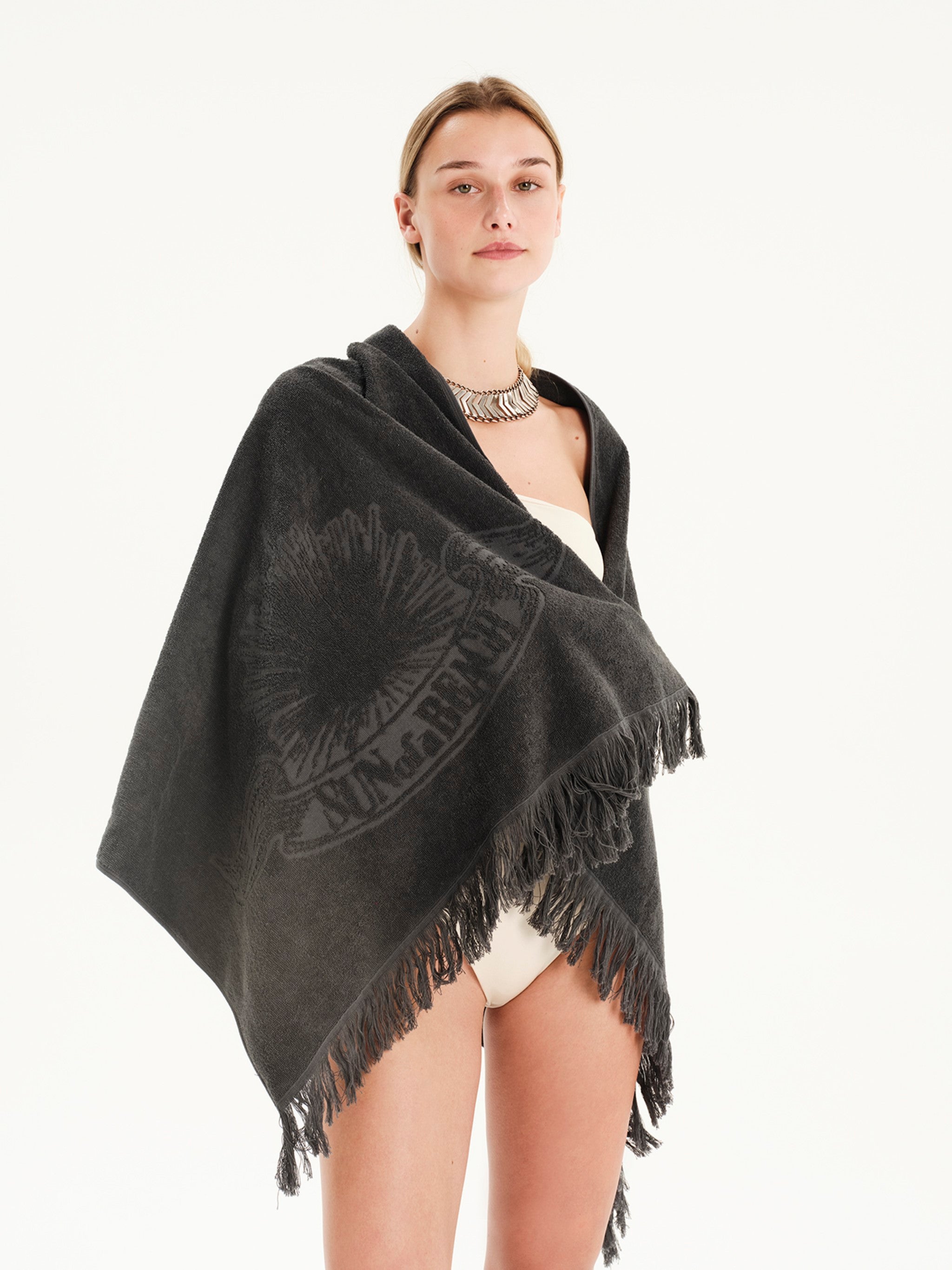 This mini version of our Monochrome beach towel brings the same luxury in a smaller size. Made from the finest cotton terry, it’s soft, fluffy, and highly absorbent, keeping little ones comfortable and dry. Fringed edges and our embossed logo add a stylish touch—perfect for junior beachgoers or anyone preferring a smaller towel.